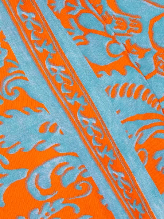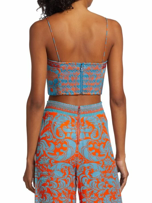 Cut in a wide-leg silhouette, these smocked pants boast a large abstract print.
