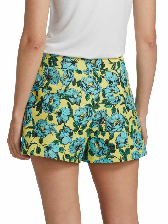 Cut from a vibrant floral cady for supple structure, these high-waisted shorts are finished with side and back pockets.