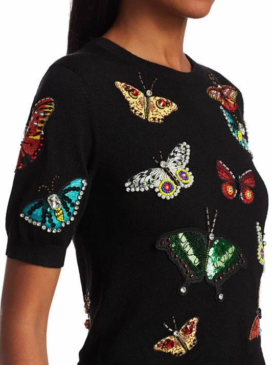 ONLY AT SAKS.COM. The classically elegant crewneck pullover is given a whimsical update with colorful butterfly embroidery.