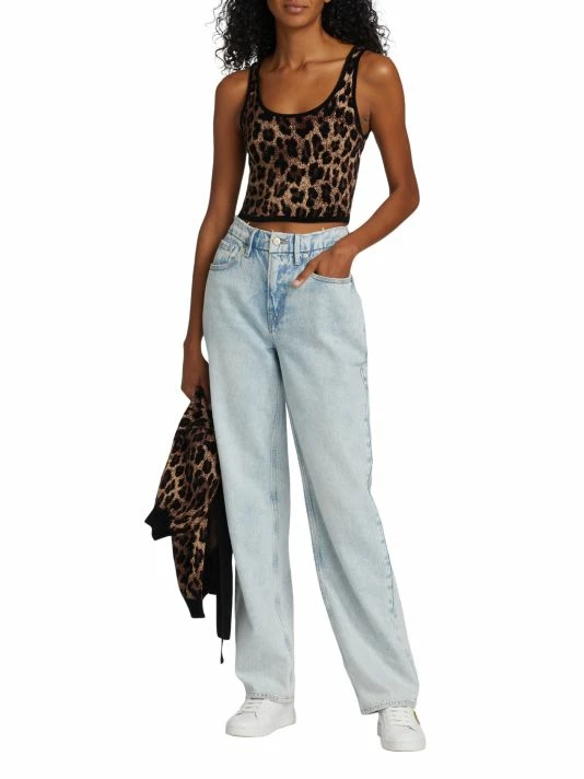 Alice + Olivia’s Daryn cropped tank features a scoopneck and scoopback in a soft, leopard-print knit. Contrast trim finishes this effortless style.