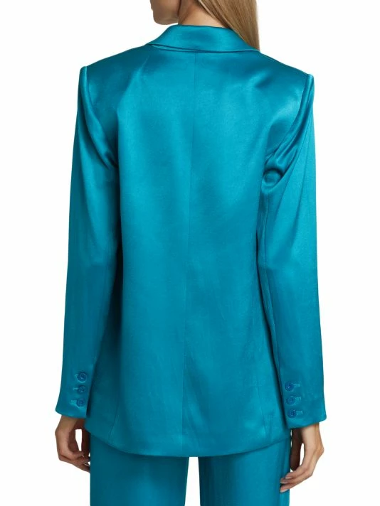 The Denny blazer by Alice + Olivia is crafted of satin in a single-breasted silhouette.