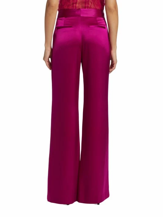 Crafted of smooth satin, the Dylan pants from Alice + Olivia feature a high-rise waist with tailored front pleats. Side on-seam pockets and back welt pockets finish this wide-leg style.