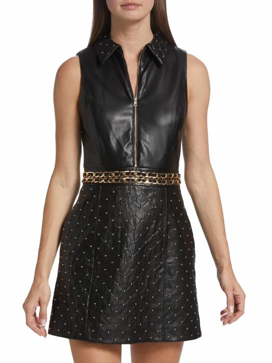 Alice + Olivia’s Ellis dress is crafted from faux leather with quilted and stud detailing for a vintage-inspired look.