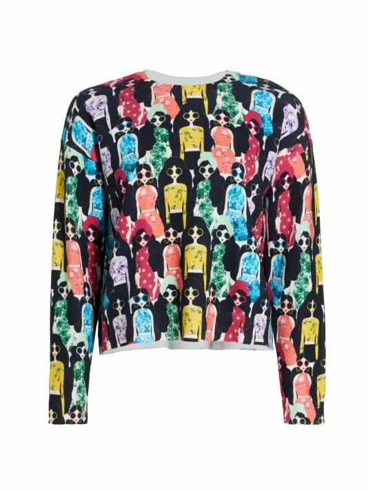 The Gleeson sweater from Alice + Olivia is decorated with a colorful print in a pullover style.