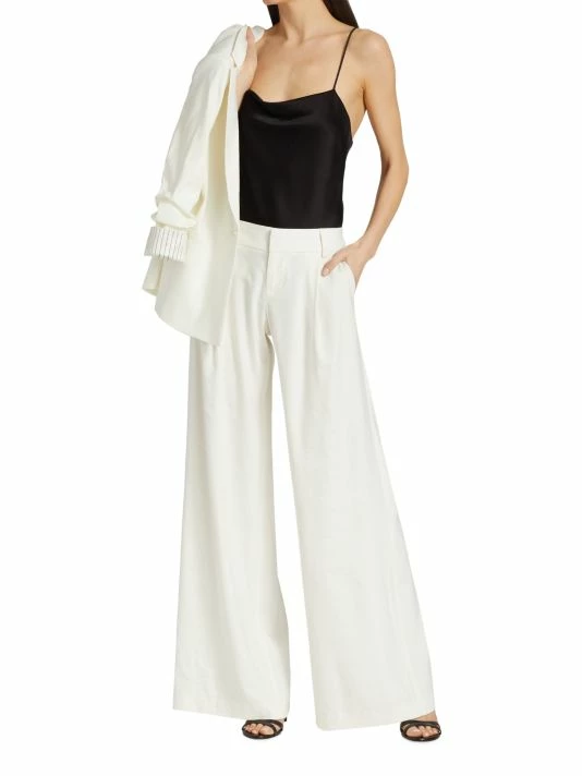 The Harmon bodysuit from Alice + Olivia features a satin bodice with a cowl neck and delicate spaghetti straps. This pull-on style is finished with a back zip closure.