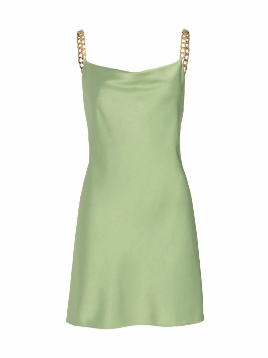 This minidress is detailed with golden chain straps.