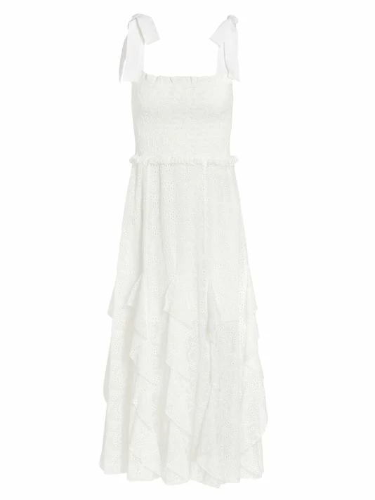 ONLY AT SAKS. Crafted of soft cotton, this midi-length dress is detailed with a smocked bodice and eyelet embroidery throughout the design.