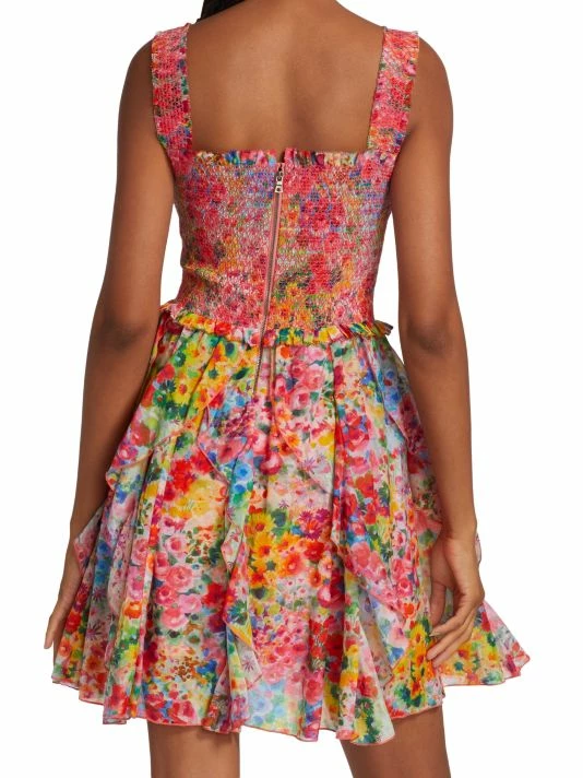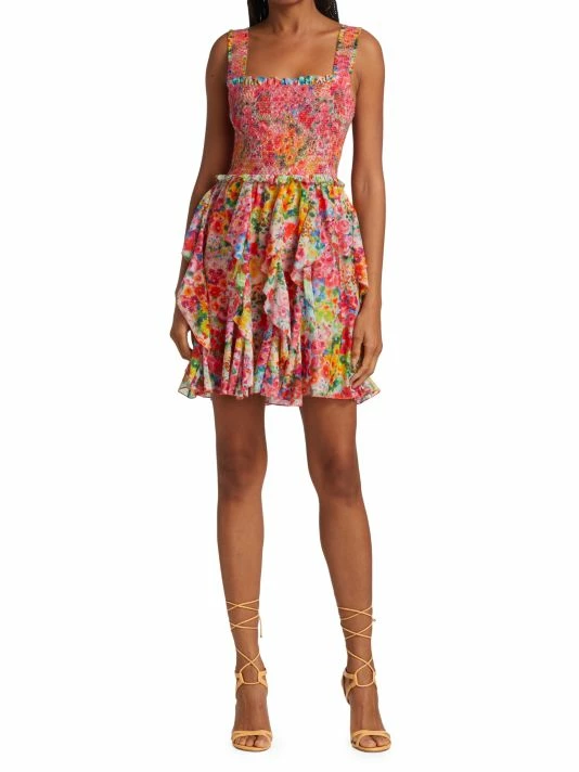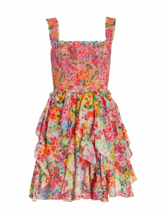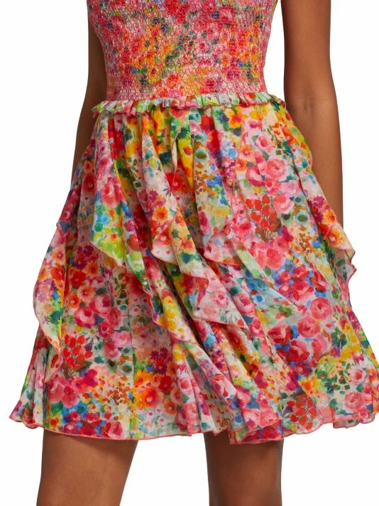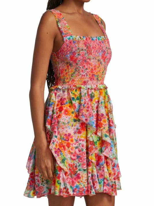 Alice + Olivia Jocelyn Smocked Ruffle Minidress