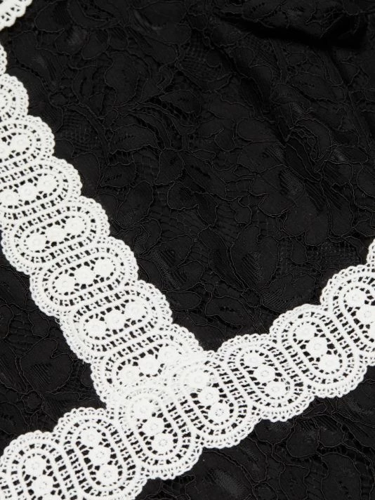Cut in an A-line silhouette, this floral lace minidress is complete with contrast crochet detailing.