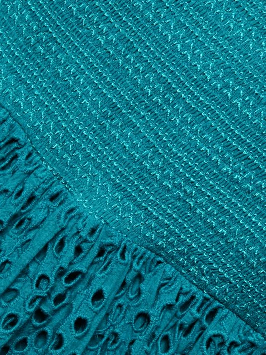 This charming off-the-shoulder maxi dress is accented with an eyelet finish, adorned with a playful flounce at the neckline.