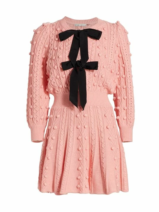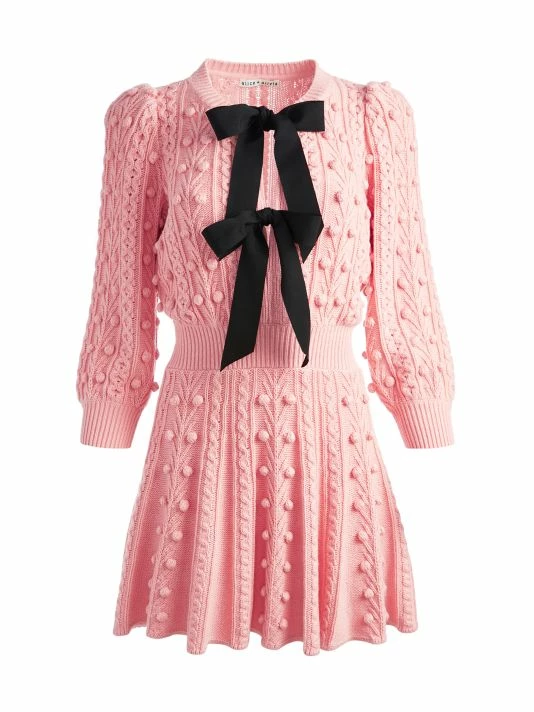 Alice + Olivia Kitty Bow Front Sweater Dress Pink Black
