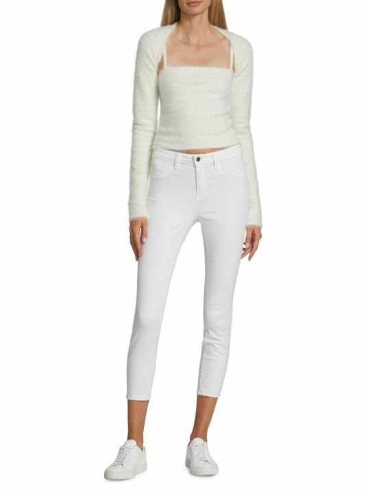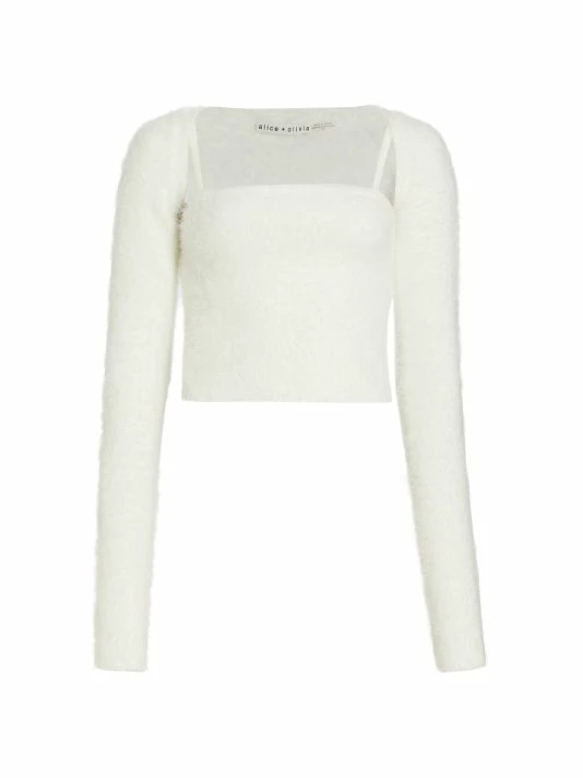 The Luetta crop top by Alice + Olivia is designed with an attached long-sleeve cardigan.