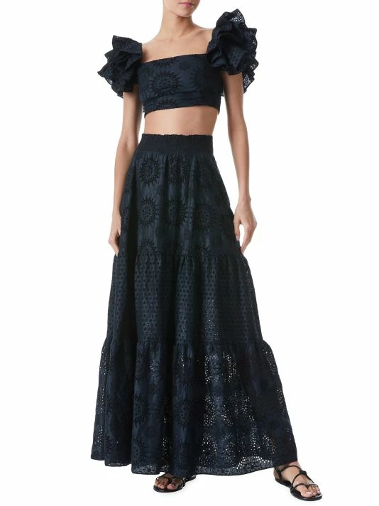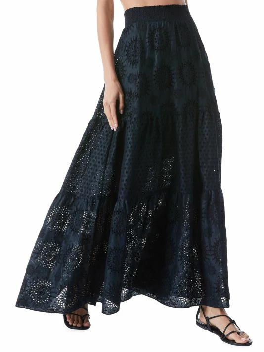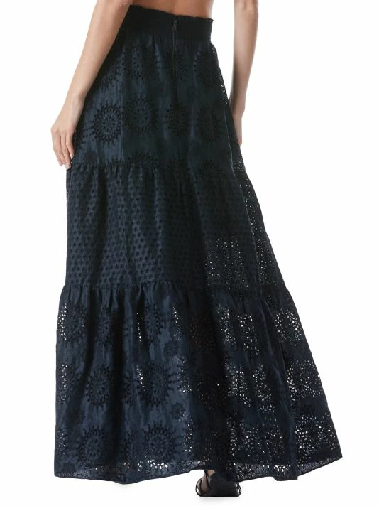Crafted of a cotton-linen blend, the Reise maxi skirt by Alice + Olivia is detailed with stunning eyelet embroidery.