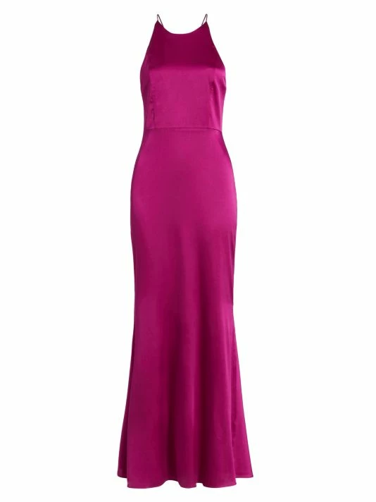 Crafted from stretch silk satin, Alice + Olivia’s Samia gown has a halterneck silhouette.