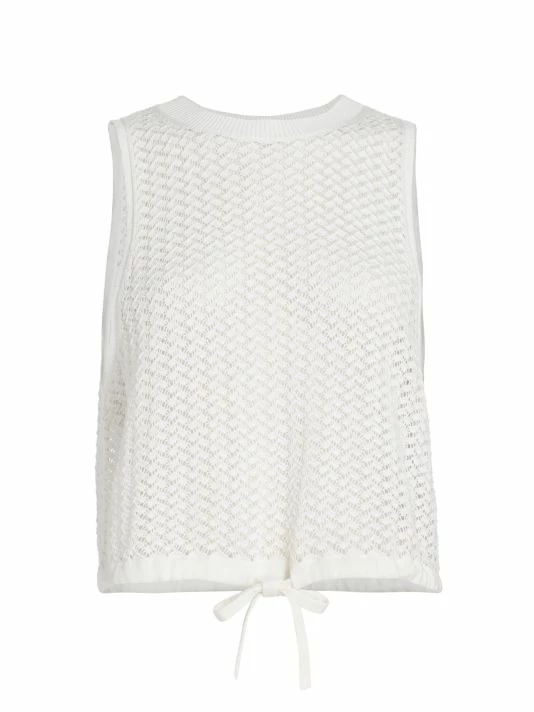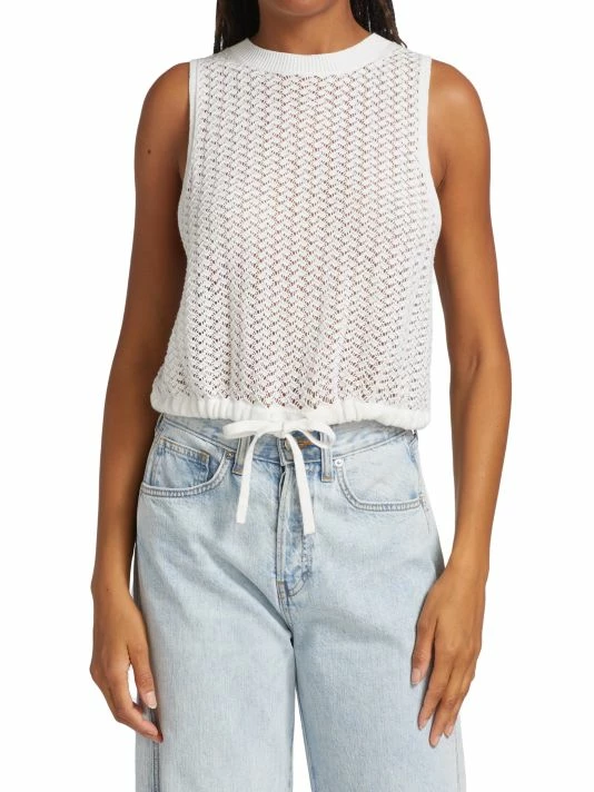 The Tevin tank from Alice + Olivia is crafted of a textured linen-blend knit. This cropped, blouson style features rib-knit trim and an adjustable drawstring hem.