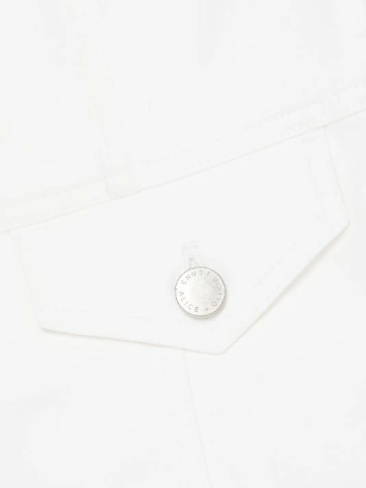 Alice + Olivia’s Thersa minidress is crafted of cotton denim with a hint of stretch. Designed with button flap pockets at the waist, this square-neck style zips at the front.