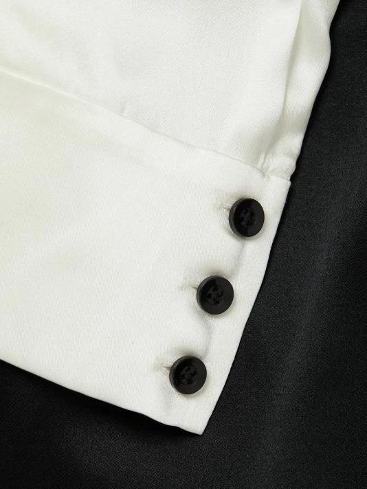 Silk-blend shirt features a striking split design features a point collar and concealed button placket.